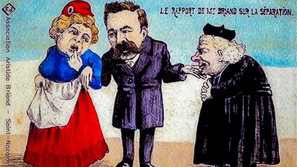 La nouvelle loi brise unilatéralement les engagements français relatifs au régime concordataire de 1802, qui régissait les rapports entre le gouvernement français et l’Église catholique. Inventant la laïcité à la française, elle proclame la liberté de conscience, garantit le libre exercice des cultes et pose le principe de séparation des Églises et de l’État.